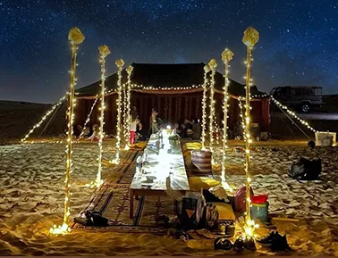 The overnight desert safari Dubai campsite has a toilet, a prayer room, a sleeping tent, blankets, and other essentials for your comfortable stay overnight. Therefore, convenience and safety are not a concern.